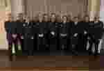 Hans-Jürgen Schön (l.) und Ingo Müller (r.) mit den Beförderten Funktionsträgern und Gästen